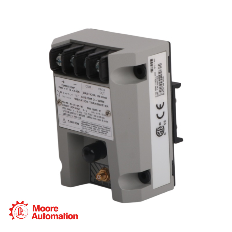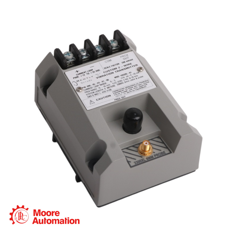 The 990-04-XX-01-CN MOD:165335-01 transmitter is a two-wire, loop-powered device that accepts input from our 3300 NSv proximity probe and its matching extension cable (available in 5 m and 7 m system length options).