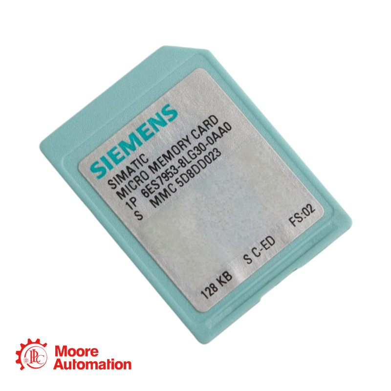 The 6ES7953-8LG30-0AA0 is a 128 KB Micro Memory Card (MMC) for Siemens SIMATIC S7-300, C7, and ET 200 systems. It serves as the non-volatile load memory for the CPU, storing the user program, hardware configuration, and system parameters.